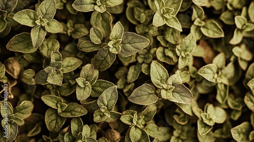 Lush green oregano plants, close-up view, garden background, food ingredient.