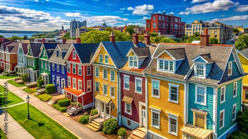 Vibrant Halifax Row Houses: Colorful Wooden Homes Drone View