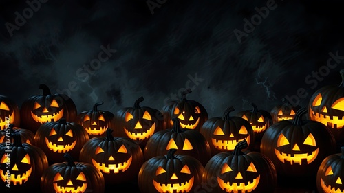 Spooky Halloween Wallpaper With Glowing Jack O' Lantern Faces On A Black Background