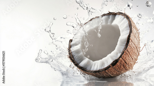 Pojedynczy kokos na białym tle, wyróżniający się szczegółową teksturą swojej skorupy, z naturalnym pięknem uwiecznionym w pełnej głębi ostrości.
