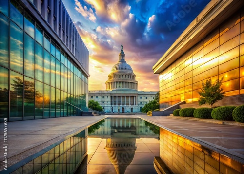 Hart Senate Office Building Washington DC - Architectural Detail & Capitol Hill Skyline