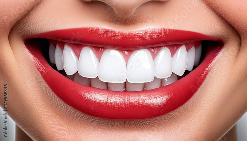 Zbliżenie, białe piękne zęby, białe tło. Generative AI