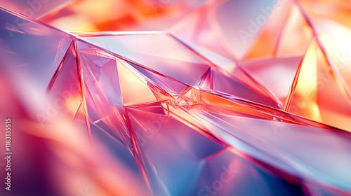 Intricate abstract patterns of colorful translucent surfaces reflecting light