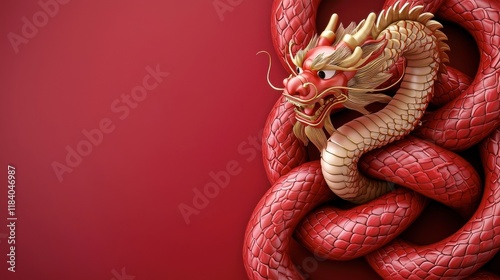Majestic Red Dragon Coiled Elegantly Against Vivid Red Background