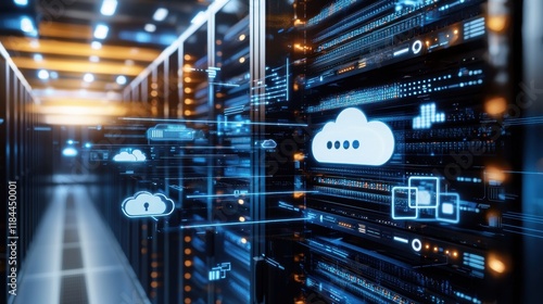 Futuristic Digital Cloud Server Network and Computing Technology Concept