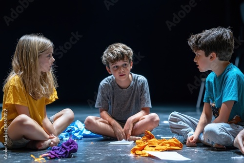 Argument during a school play rehearsal, with props and costumes scattered across the stage