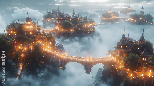 A kingdom floating above the clouds, connected by glowing bridges of light
