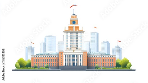 Vector flat public building icon. Administrative city building isolated on white background. Illustration of government architecture house design, exterior city hall