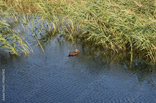 Утки в камышах на озере