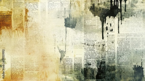 Abstract Background of Vintage Newsprint with Ink Blots and Stains