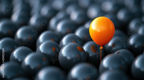 Vibrant Orange Balloon Stands Out Among Black Spheres in Background