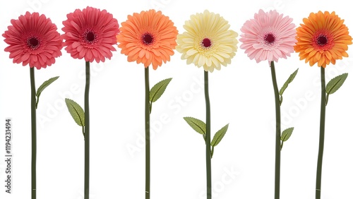 Vibrant Gerbera Daisies Isolated on White Background - Colorful Floral Design