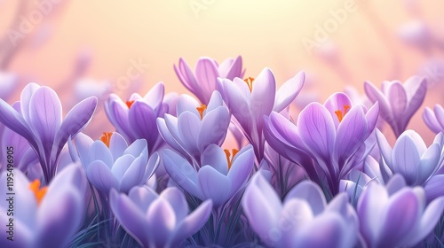 Vibrant purple crocus flowers blooming in sunlit field