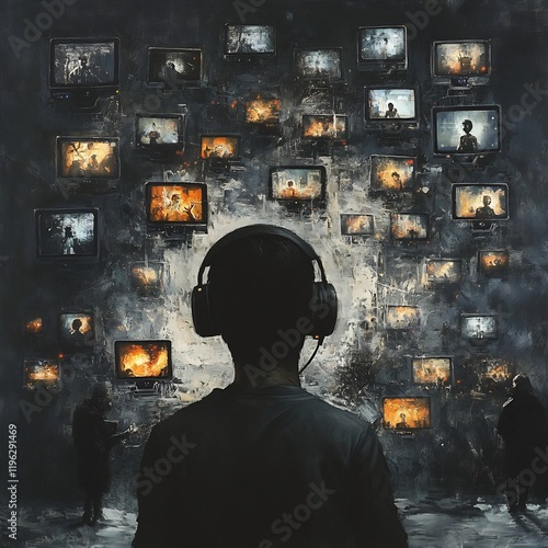 Silhouetted Figure Amid Toxic Digital Landscape of Amplified Rhetoric and Dehumanizing Interactions