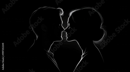silhouette of a couple kissing. lovely moment. relationship and breakup concept.