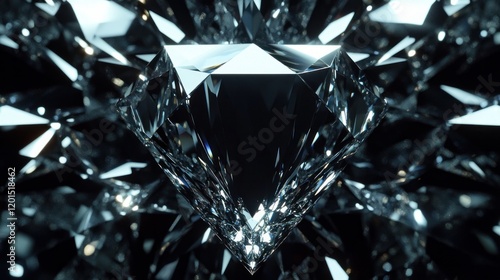 A sparkling diamond on a reflective black surface.