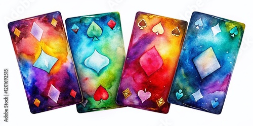 Watercolor Playing Cards Night Photography: Spades, Hearts, Diamonds, Clubs, Uno Cards