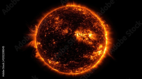 High-resolution image of the sun with solar flares and prominences visible against a black background Copy Space