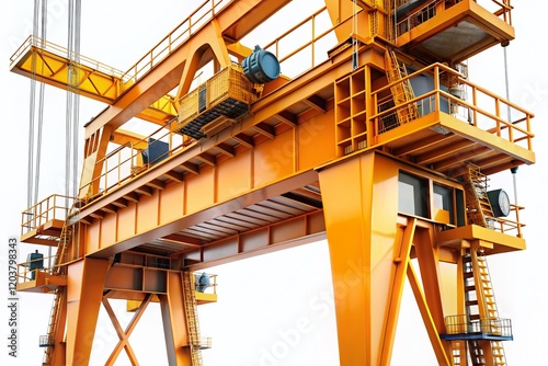Macro Photography of Isolated 3D Model Gantry Crane: Detailed Steel Structure, Industrial Machinery Component