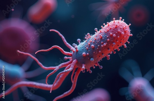 Microscopically small bacteria, depicted as colorful cells. Diversity bacteria under microscope, viruses and beneficial microbes. Concept medicine, health care