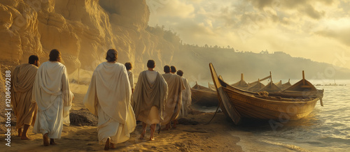 Jesus' leadership on the sea, disciples with Jesus in the boat