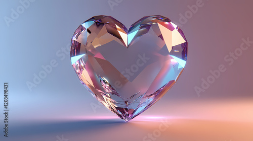 Faceted crystal heart isolated on plain light studio background, made with generative ai. Crystal Plains. Illustration