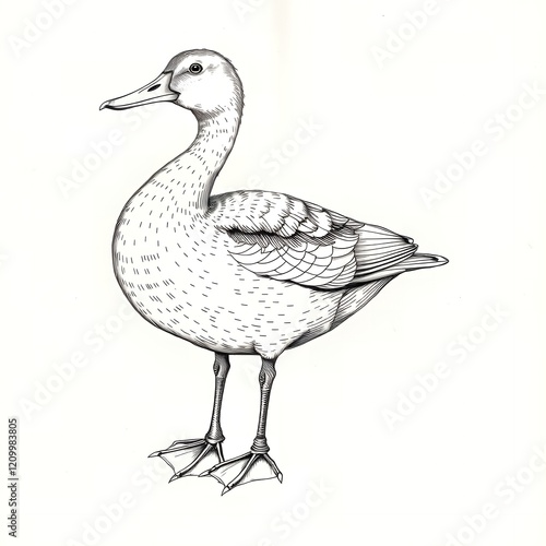 Detailed Line Art Illustration of a Goose Black and White Bird Drawing Poultry Waterfowl