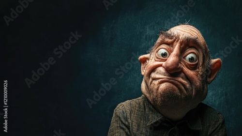 Elderly caricature of caucasian man with exaggerated expression