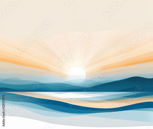 Ilustracja zachodu słońca nad morzem – malowniczy krajobraz