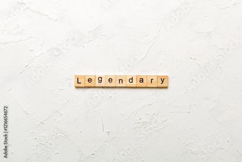 Legendary word written on wood block. Legendary text on cement table for your desing, Top view concept