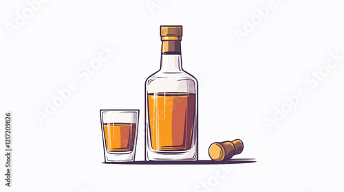 Elegant Line Schnapps Liquor Bottle and Glass of Beverage on a Wide Shot