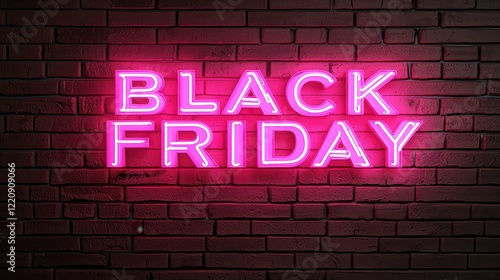 A vibrant neon sign displays the words "Black Friday" against a dark brick background, emphasizing a popular shopping event.