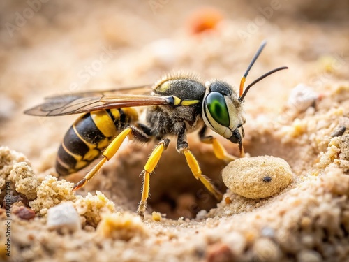 Sphex dorsalis Wasp Digging Burrow with Paralyzed Prey - Isolated Stock Photo