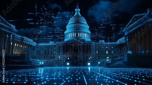 #1222588625Digital Representation of the US Capitol Building With Network Connections Illuminated at Night