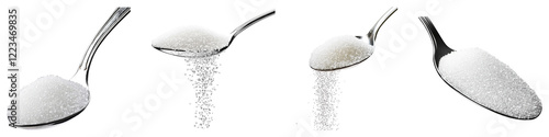 Spoonful of granulated sugar isolated on transparent background, PNG, Set of
