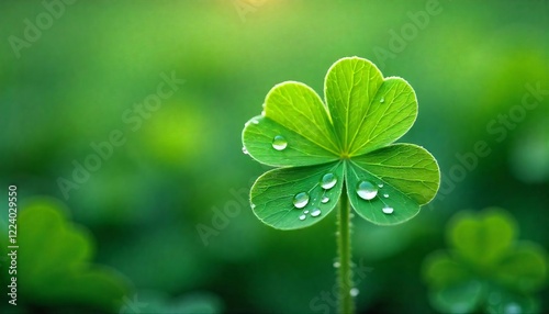 Vibrant Green Clover Leaf with Dew Drops Nature Photo