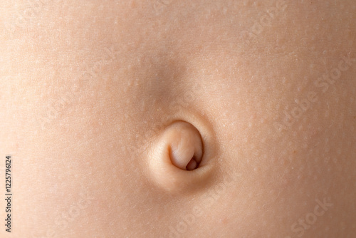 Close-up of a baby navel with delicate skin in soft lighting, highlighting the texture.