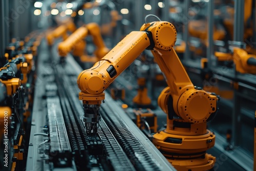 Industrial robots assembling products in a modern manufacturing facility during daylight hours