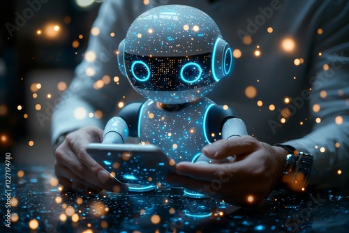 An AI Chatbot serves as intelligent digital customer service. A businessman employs a smartphone with the Chatbot app to automatically answer online messages, assisting customers promptly