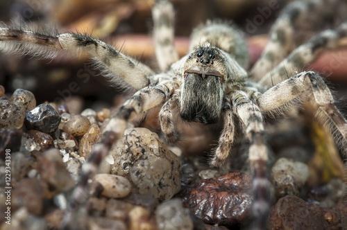 Wolf spider (Lycosidae sp.), Spree, Cottbus, Brandenburg, Germany, Europe