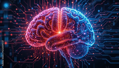 fBig Data and AI An illuminating image of a human brain intertwined with a processor, effectively illustrating the evolution of technology through big data and artificial intelligenceuu