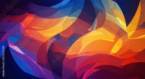 Abstract Color Waves: Dynamic and vibrant abstract composition features overlapping translucent shapes, swirling together in a kaleidoscope of colors.