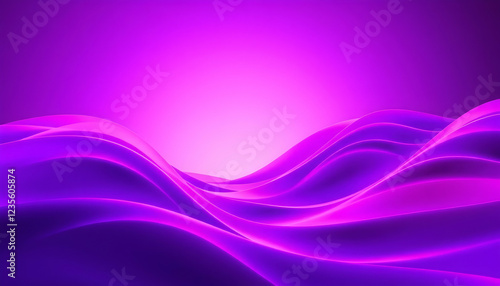 Abstract waves, vibrant purple and blue colors, smooth glossy curves, dynamic fluid motion, neon glow, futuristic design, digital art, high contrast, luminous gradients, sleek metallic texture, 3D ren