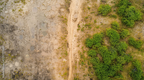 Aerial View of Vibrant Savanna Landscape Lush With Greenery After Refreshing Rain. Generative AI