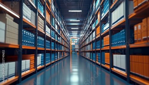 Vibrant Storage Room with Shelves of Colorful Data and Cinematic Lighting - AI generated illustration