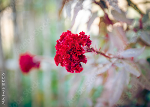 Selective focus blooming Celosia, woolflowers or cockscomb flower in highland Mai Chau, Hoa Binh, Vietnam, resemblance to the comb on rooster vibrant blossom magenta with unique comb-like shape