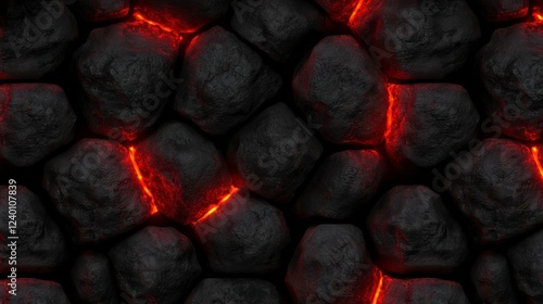 Seamless close-up texture of volcanic rocks with glowing lava cracks highlighting the fierce beauty of the earth's raw power.