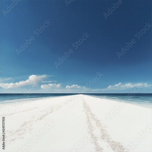 Endless white sand beach meeting azure sky and calm ocean horizon