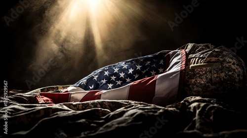 Fallen Soldier Draped In American Flag And Uniform