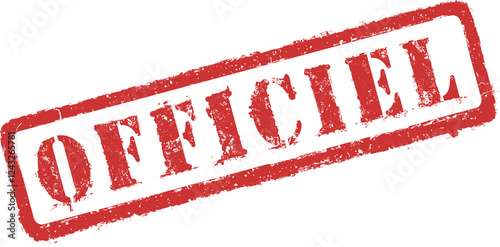 OFFICIEL : tampon rouge grunge, vieux, mal imprimé et usé. Texte rouge.
